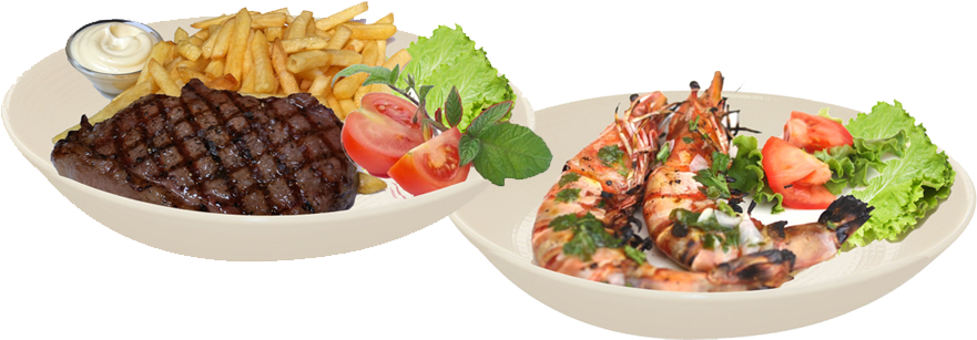 Nos Viandes ACCOMPAGNEMENT : SALADE OU FRITTES OU HARICOTS VERTS OU PATES OU RIZ. |